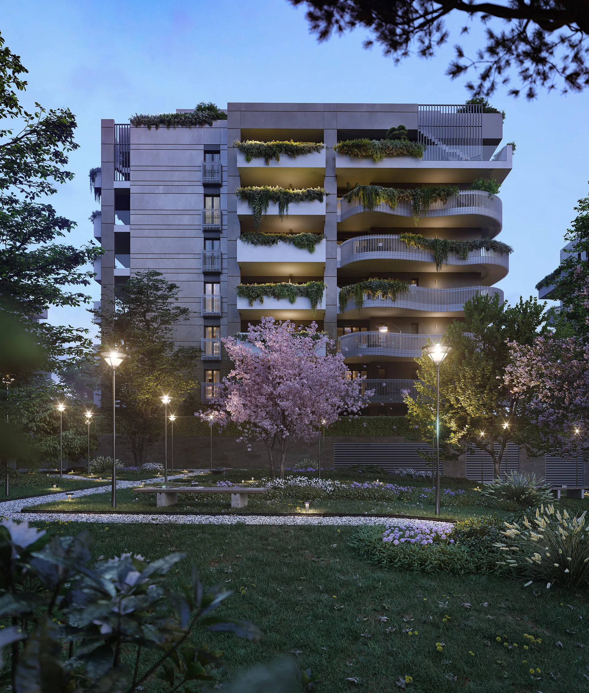 I giardini comuni e le aree all'aperto di Eurora Living sono un tributo allo spazio collettivo, progettati non solo per una nuova Community residenziale, ma anche per preservare e valorizzare la vita degli alberi storicamente presenti nell'area. Questi luoghi di ritrovo incoraggiano momenti di condivisione e di relax personale, mantenendo un profondo rispetto per il contesto naturale e la biodiversità che ha dato vita a quest'o nuovo luogo dell'Abitare così speciale.